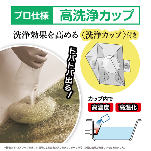 洗浄カップを取り付けると、高濃度・高温化し洗浄力が大幅にアップします。