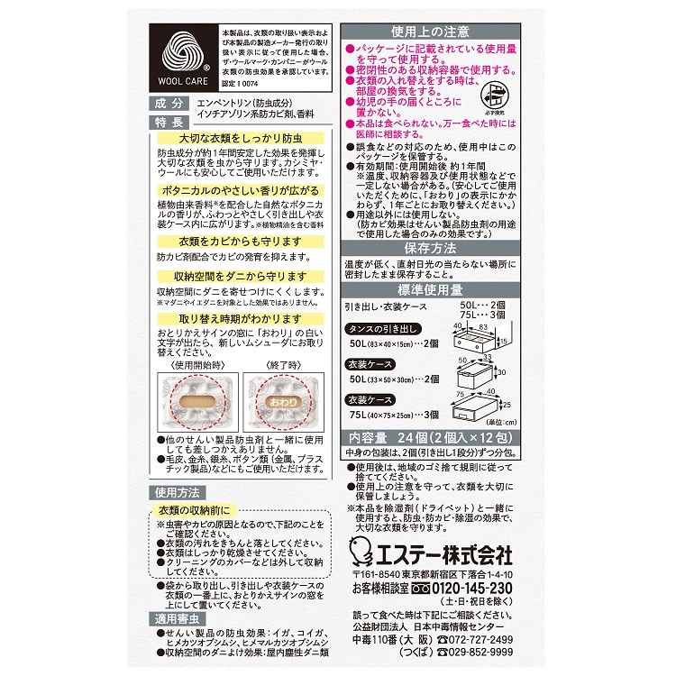 ※本品と除湿剤(ドライペット)を一緒に 使用すると、防虫・防カビ・除湿の効果で、大切な衣類を守ります。