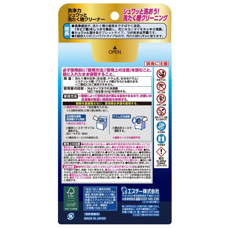 【お取り寄せ】エステー 洗浄力 シュワッと洗たく槽クリーナー 3回分