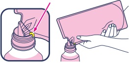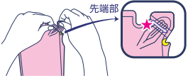 ○パックを強く持つと、液が飛び出ることがあるので注意する。