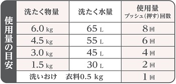 ・洗たく機の投入口に直接プッシュできるので、計量いらずで使いやすく、香りの好みに合わせて