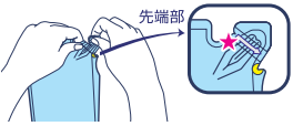 ○パックを強く持つと、液が飛び出ることがあるので注意する。