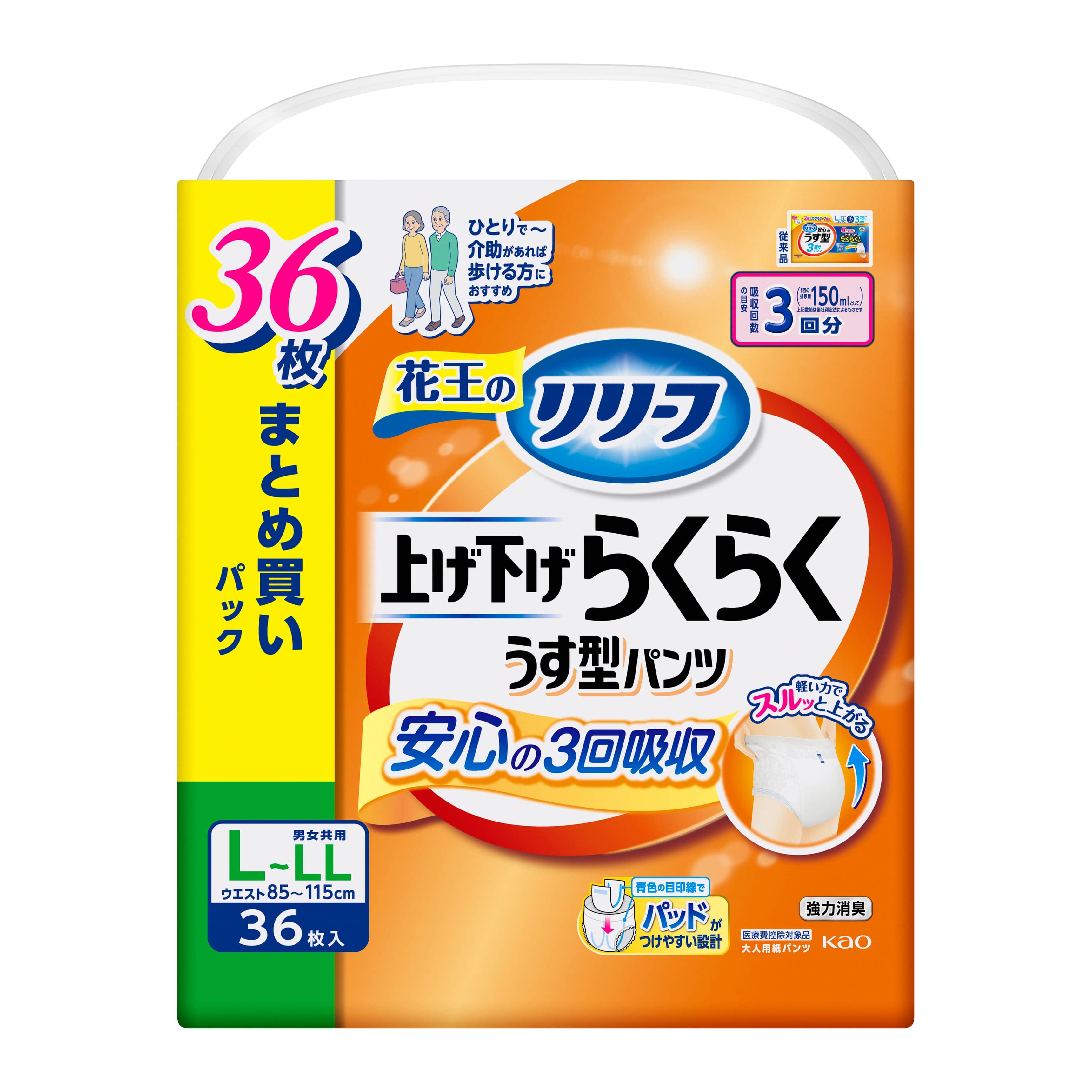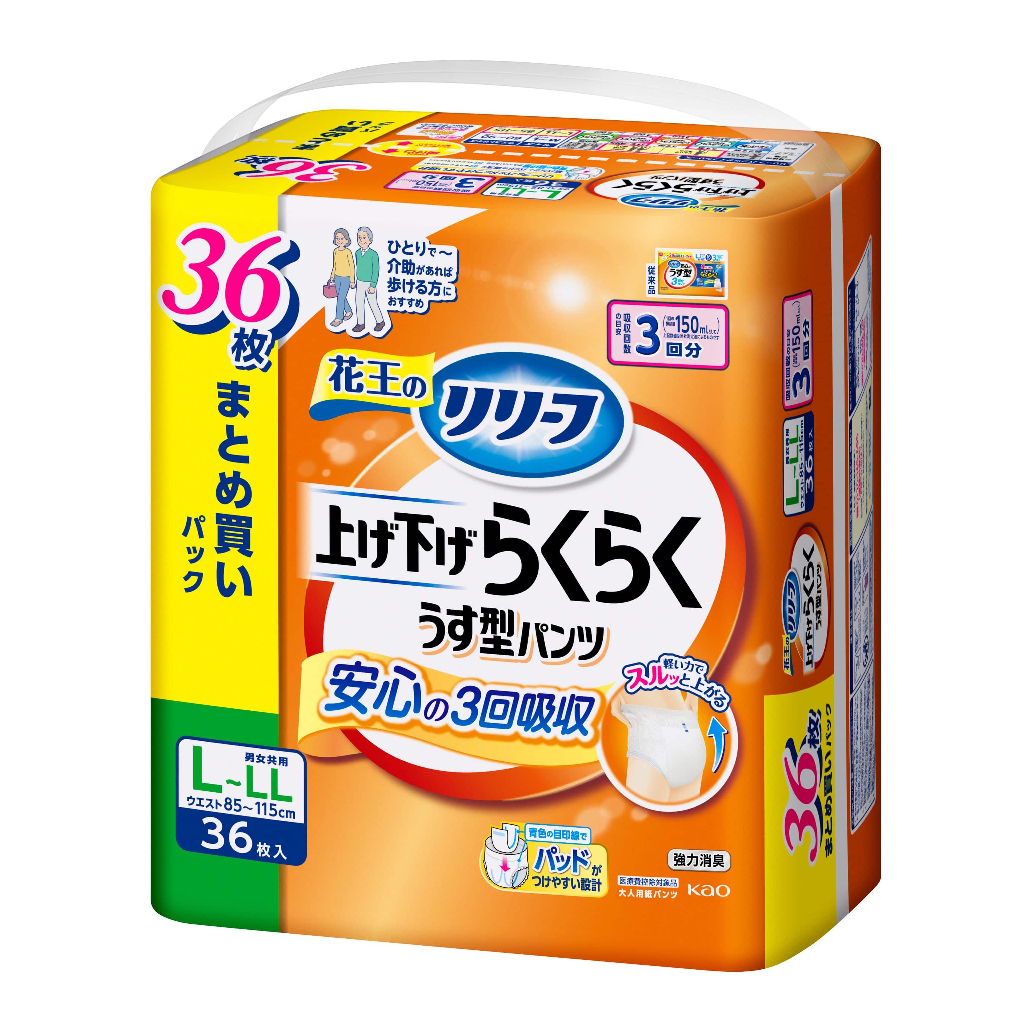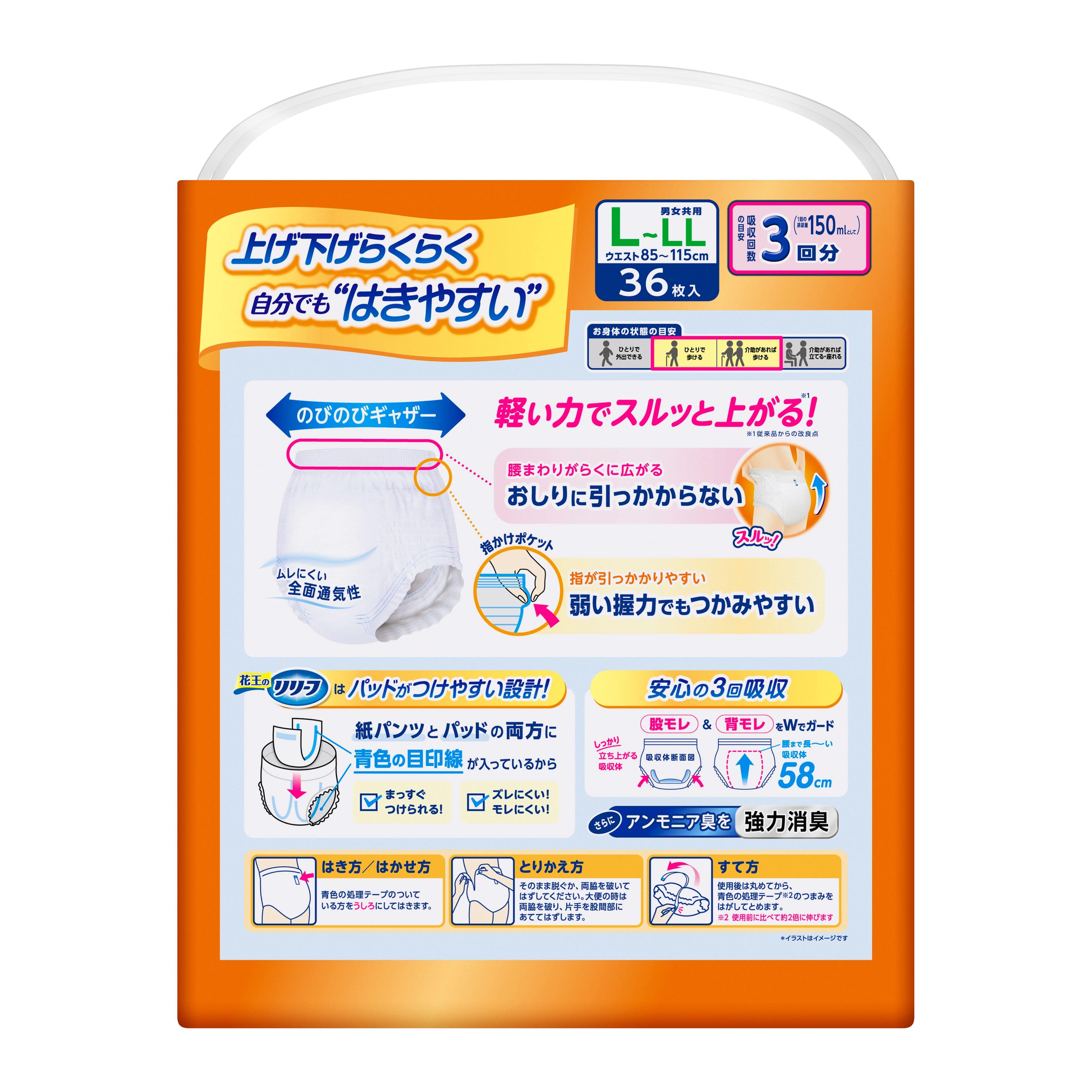【お取り寄せ】リリーフ パンツタイプ 上げ下げらくらく うす型パンツ3回分 L−LL 36枚