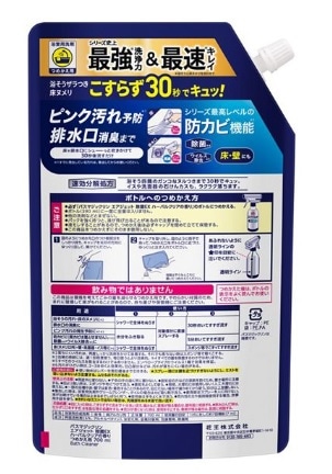 ◆速効分解処方で、浴そうのザラつきやヌルつき、床のヌメリまでこすらず30秒でキュッ!ピンク汚れ予防(※1)、