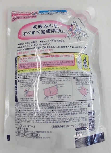 水、ラウレス硫酸アンモニウム、オレフィンC16スルホン酸Na、ラウラミドプロピルベタイン、ラウレス-4カルボン酸Na、ジステアリン酸グリコール、エタノール、ラウレス硫酸Na、コカミドMEA、PEG-65M、PEG-150、グアーヒドロキシプロピルトリモニウムクロリド、PG、ラウレス-4、エチルヘキシルグリセリン、リンゴ酸、クエン酸、水酸化Na、安息香酸Na、フェノキシエタノール、香料、赤106、赤504