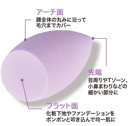 ※吸収性が高いため化粧下地、リキッド・クリームファンデーション、コンシーラーを直接スポンジにつけてのご使用はお避けください。