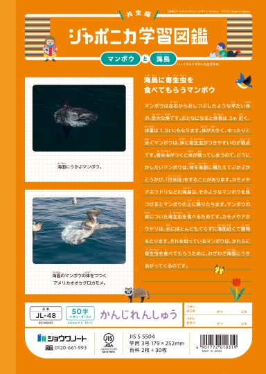 ◆裏表紙には表紙で描かれた動植物のイラストの写真を掲載。読み物(学習百科)付きです。
