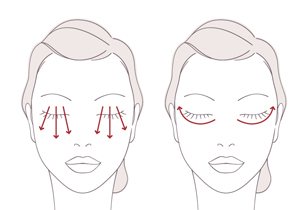 目もとは横にこすらないように、まつ毛の根もとから毛先に向かってやさしくなじませてから、