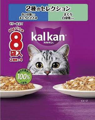 カルカンパウチ 2種のセレクション(かつお節入りまぐろとささみ まぐろ・白身魚入り) 8袋