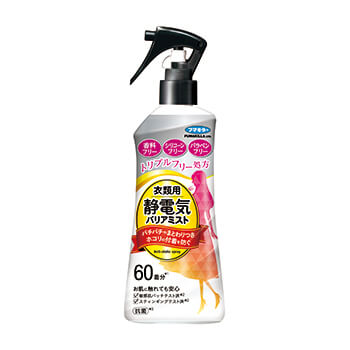 セーターやマフラー等の衣類・布製品にスプレーするだけで、静電気によるパチパチや衣類のまとわりつき、ホコリ・花粉の付着を防ぎます。
