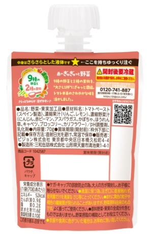 トマトペースト(スペイン製造)、濃縮果汁(りんご、レモン)、濃縮野菜汁(にんじん、赤ピーマン、アスパラガス、