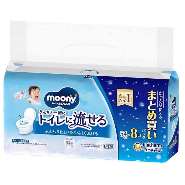 ムーニー おしりふき トイレに流せるタイプ つめかえ用 54枚×8