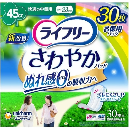 ライフリー さわやかパッド 快適の中量用 45cc 30枚