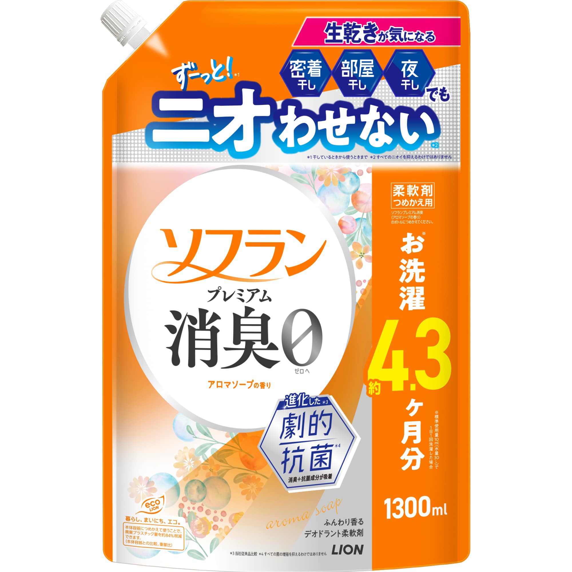 ソフラン プレミアム消臭 アロマソープの香り つめかえ用 ジャンボ 1300ml