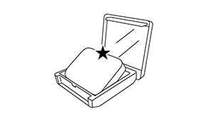 @ケースから中皿を取り出すときは、中皿の★部分のふちに指の腹をあて、軽く手前に押しながら
