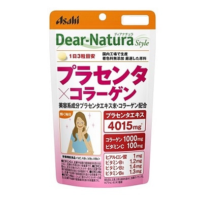 ※製造工程中で、3粒中に豚プラセンタエキス末146mg[プラセンタエキス換算4015mg]、コラーゲン1000mg、ヒアルロン酸1mgを配合しています。
