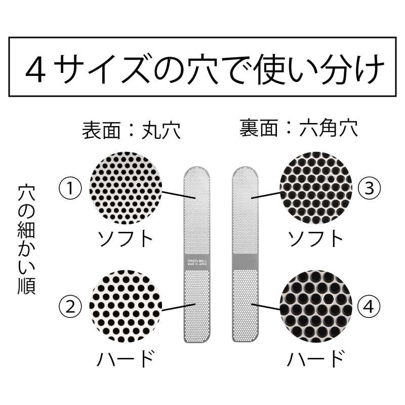 ■4つのサイズの穴で使い分けのできるツメヤスリです。