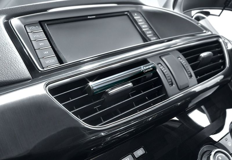 香料に天然アロマオイルを配合した、アルミスティック形状のエアコン吹出口取付タイプ芳香剤。