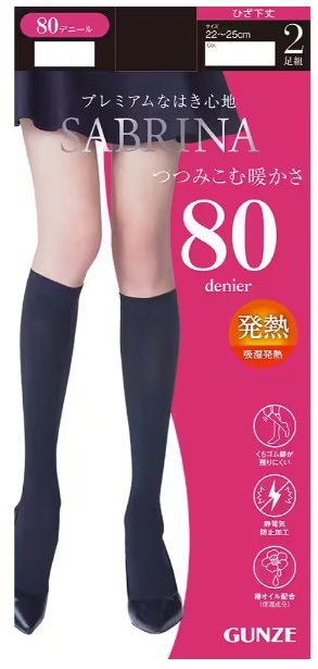 サブリナ 80デニール ひざ下丈タイツ 2足組 ブラック