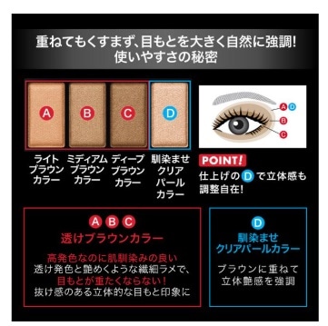 ※より立体感を強調したい時は、Dをさらに上まぶたと下まぶたの中央などにポイントおきしてお使いいただくことも可能です。