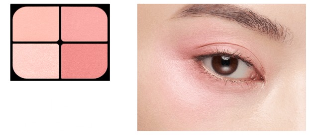 ■頬まで広く色をのせて 目もとの印象を拡大 立体感&血色感を同時に叶える むにふわ質感のチークシャドウ