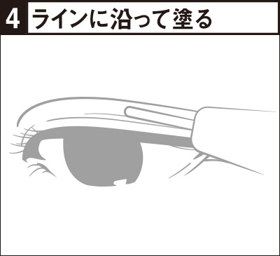 二重にしたいラインに沿って、ゆっくりと先端部でまぶたを 軽く押すように塗って下さい。 Point : はみ出さないように、少しずつ丁寧に塗るのがコツです。 |