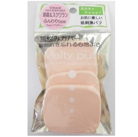 ・パフが汚れた時は、ぬるま湯に中性洗剤を溶かして、軽く押し洗いして十分濯いだ後、水気を取り陰干ししてください