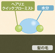クイックブローミストの速乾成分が水を連れて一緒に蒸発するから早く乾く!