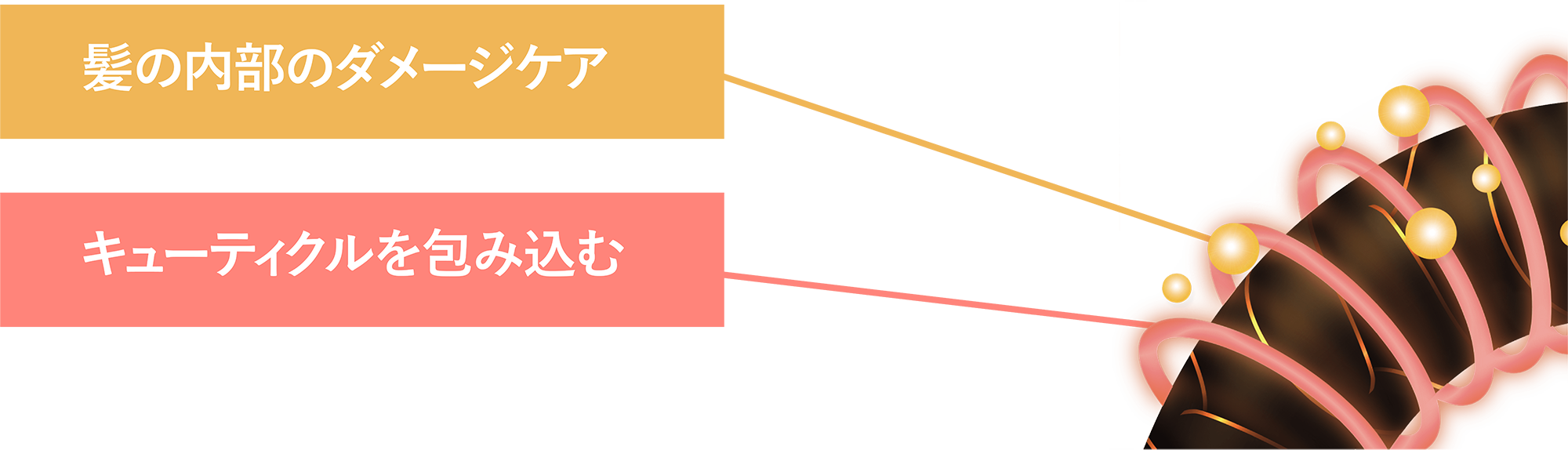 浸透系トリートメント成分と毛髪保護系トリートメント成分で内と外からW補修。
