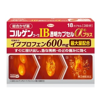 解熱鎮痛成分「イブプロフェン」を当社コルゲン内イブプロフェン最大量配合。