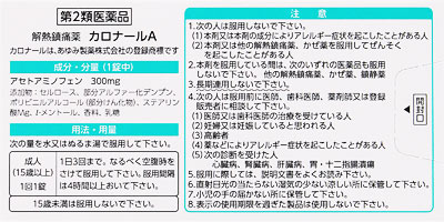 | 成人(15歳以上) | 1錠 | 3回まで。 なるべく空腹時をさけて服用して下さい。 服用間隔は4時間以上おいて下さい。 |