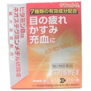 遠近調節を行う目の筋肉(毛様体筋)の働きを活発にするシアノコバラミン、ピント調節機能改善作用のあるネオスチグミンメチル硫酸塩、目の組織代謝を活発にするピリドキシン塩酸塩、結膜充血を抑えるナファゾリンの4種類の有効成分を一般用医薬品の承認基準の最大濃度配合、合わせて7種類の有効成分を配合 ◎成分・濃度 シアノコバラミン(ビタミンB₁₂)・・・0.020% ネオスチグミンメチル硫酸塩・・・0.005% ピリドキシン塩酸塩(ビタミンB₆)・・・0.100% ナファゾリン塩酸塩・・・0.003% クロルフェニラミンマレイン酸塩・・・0.020% タウリン・・・0.500% コンドロイチン硫酸ナトリウム・・・0.100% ◎効能・効果 目の疲れ、結膜充血、目のかゆみ、目のかすみ(目やにの多いときなど)、眼病予防(水泳のあと、 ほこりや汗が目に入ったときなど)、紫外線その他の光線による眼炎(雪目など)、 眼瞼炎(まぶたのただれ)、ハードコンタクトレンズを装着しているときの不快感 ◎用法・用量 1日5〜6回、1回2〜3ずつ滴点眼してください。 用法及び用量に関する注意 →商品画像右の「ご購入前に必ずご覧ください」をご参照ください。