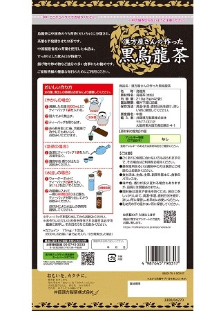 本品は中国福建省産の烏龍茶(水仙種)を100%使用し、すっきりとした飲み口で、おいしく仕上げました。
