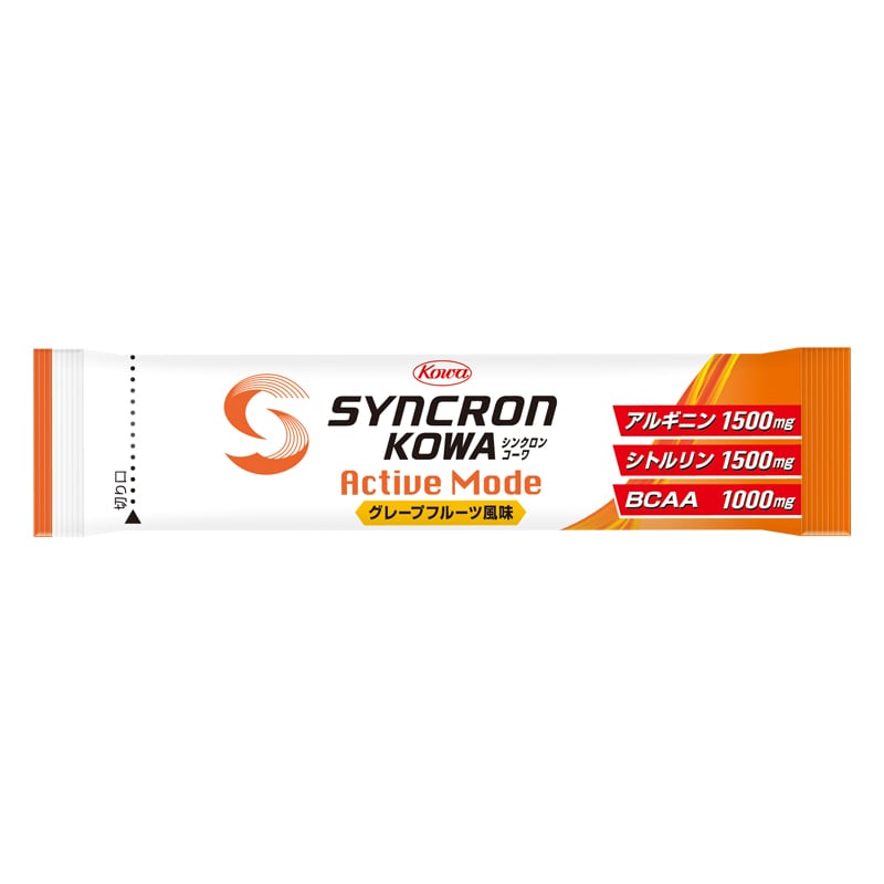 ◇シンクロンコーワ アクティブモード 顆粒は、アルギニン1,500mg、シトルリン1,500mg、必須アミノ酸であるBCAAを
