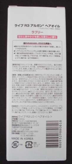 ライプ R3 アルガンヘアオイル ラブリー 100ml